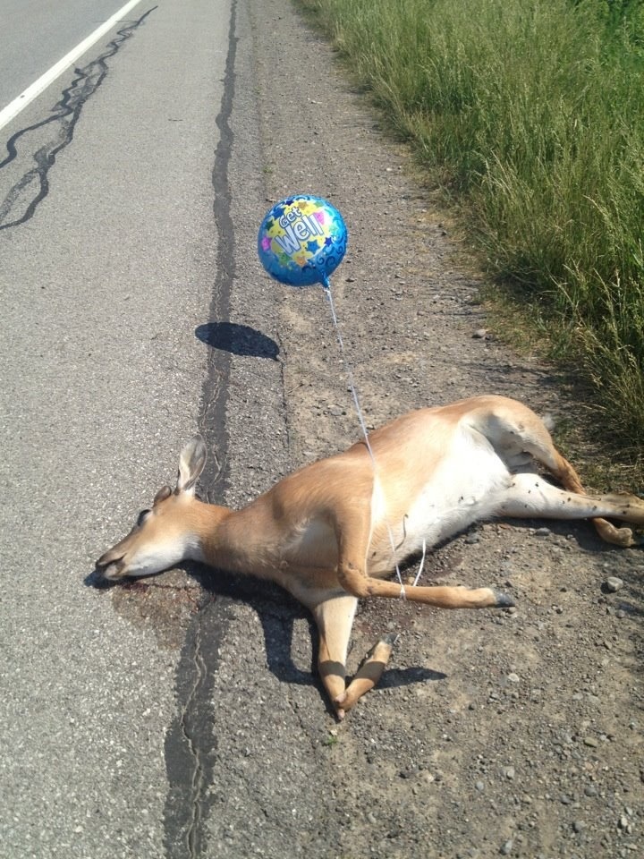 get well soon balloon deer hit on side of road dead - Get Well Soon Dead Deer Meme