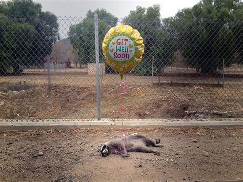"GRAPHIC GET WELL SOON ROADKILL GOES VIRAL", Prankster ties 'get well soon' balloon to road-kill raccoon. While those a little squeamish may recoil at the sight of a dead raccoon, . This site is an open community for users to share their favorite pics on the internet, all pics or pictures in this page are for personal picture use only, it is stricly prohibited to use this pix for commercial purposes, if you are the writer and find this picture is shared without your permission, please kindly raise a DMCA report to Us.